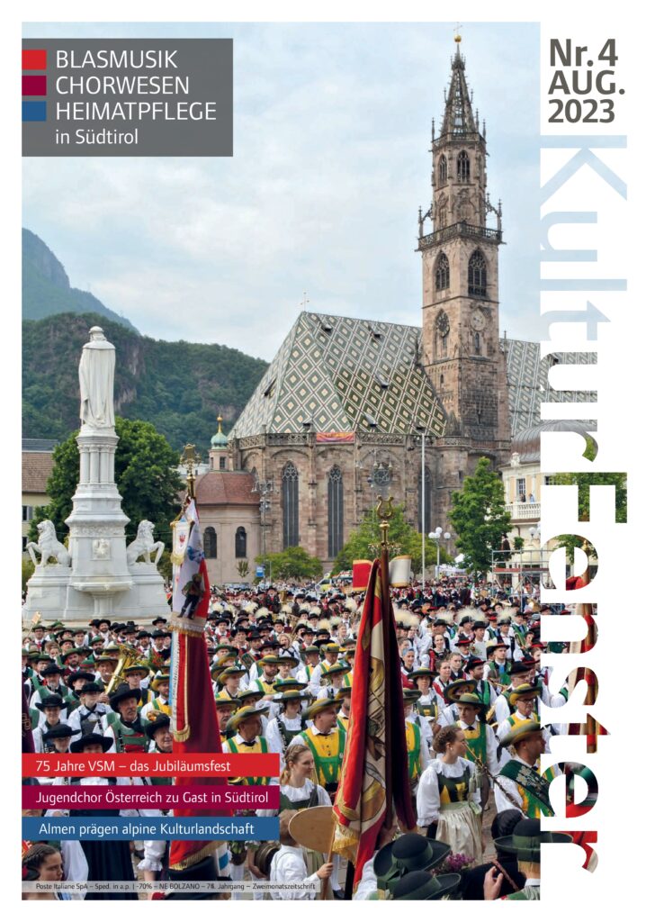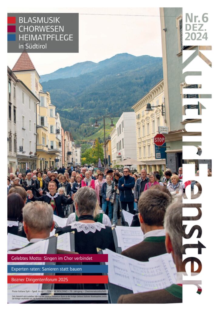 Das Institut für Sozialforschung und Demoskopie “apollis” hat im Auftrag des Verbandes Südtiroler Musikkapellen (VSM), des Südtiroler Chorverbandes (SCV) und des Südtiroler Heimatpflegeverbandes (PHV) eine Mitglieder- und Leserumfrage zur Verbandszeitschrift “KulturFenster” durchgeführt. Diese Bestandsaufnahme bildet die Grundlage, die Zeitschrift an die Lesegewohnheiten und Lesepräferenzen anzupassen.