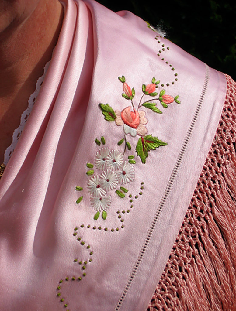Die kostbaren Seidenschürzen und Schultertücher vor Nässe schützen und möglichst nicht waschen. Eventuell chemisch reinigen lassen.