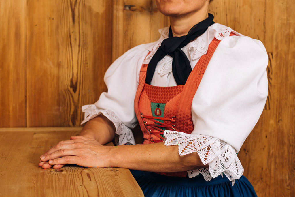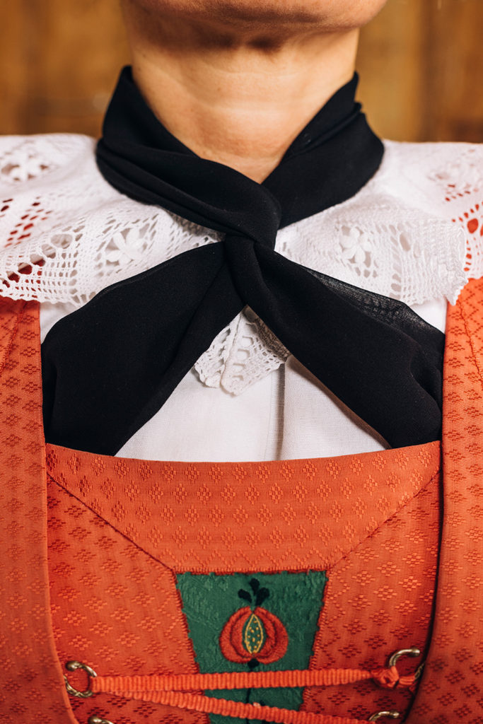 Das Untertüchl und die weißen Baumwollärmel sollten immer sauber gewaschen und frisch aufgebügelt sein, die Spitzen ordentlich gestärkt.