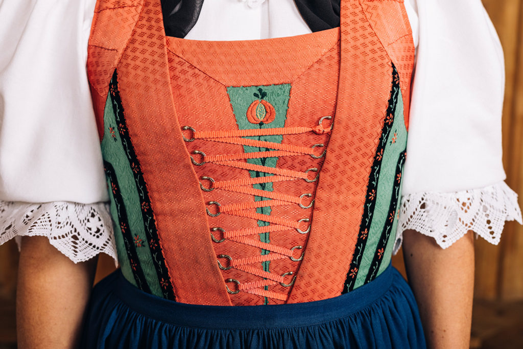 Bei der Miedertracht ist das Mieder der markanteste Teil der Tracht und gibt Auskunft, woher eine Trachtenträgerin kommt.