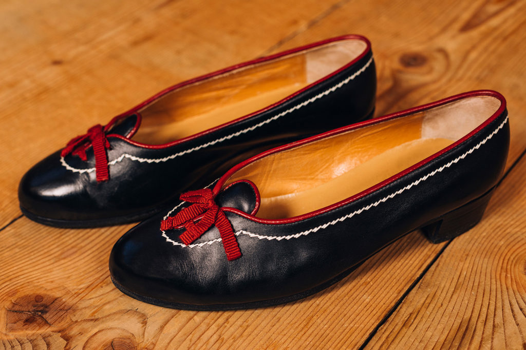 Zur Miedertracht gehören Trachtenschuhe, die je nach Gegend unterschiedlich aussehen. Grundsätzlich sollte der Absatz eher breit und nicht höher als 3-4 cm sein.